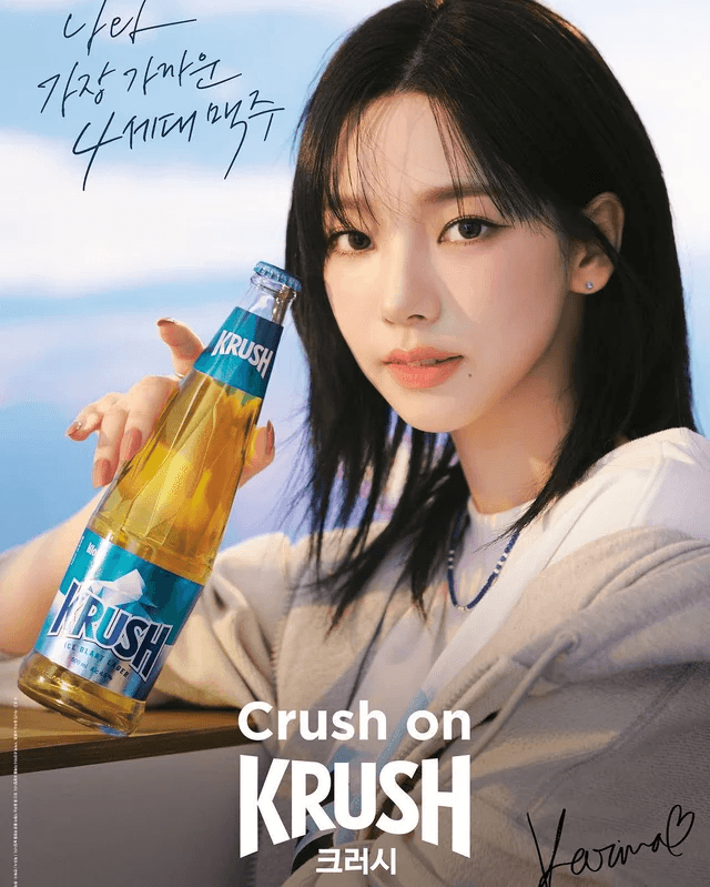 On 15 Nov' 23, KARINA was announced as Model for Krush beer by Lotte Chilsung Beverage. This is the 1st solo brand endorsement of KARINA.