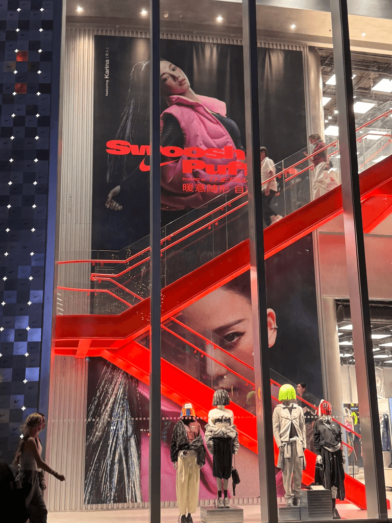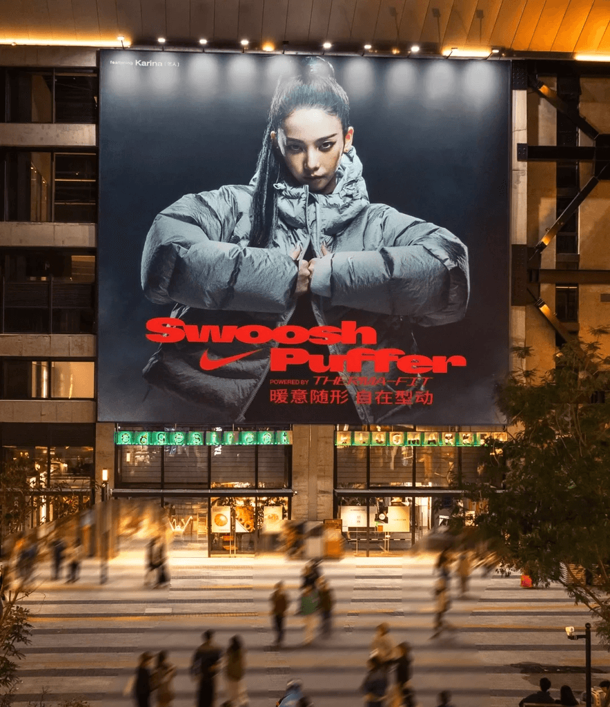 Nike Swoosh Puffer campaign feat. KARINA spotted in various locations - in stores and billboards, as well as digital ads.